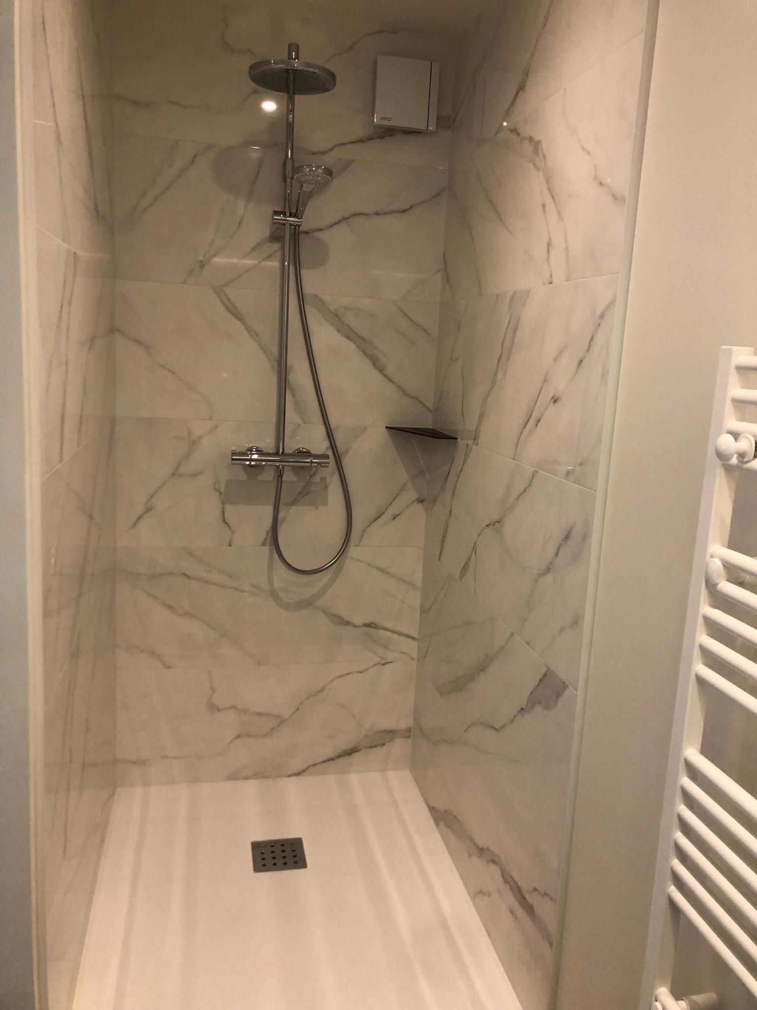 Laissez-nous transformer votre douche en une oasis moderne et élégante. Notre maîtrise de l'art du carrelage assure une réalisation impeccable.